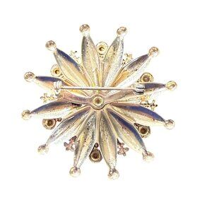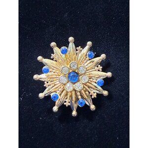 Vintage Gold-Tone Snowflake Brooch With Blue & Clear Rhinestones