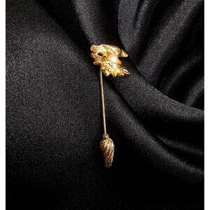 This piece is designed as a stick pin, a format that dates back to the 19th century, when it was commonly used by gentlemen to secure cravats or lapels. In the 1990s, the stick pin saw a stylish revival, now worn by both men and women as a statement accessory on lapels, scarves, or hats.