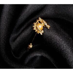 At the heart of the piece is a faux or real pearl cabochon, evoking timeless elegance. Pearls were frequently used in 1990s jewelry as a nod to classic femininity and sophistication.