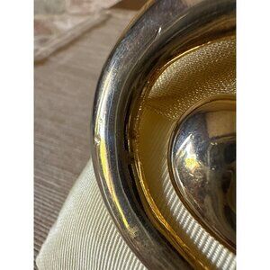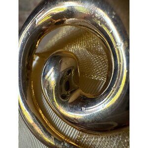 This vintage gold-tone brooch features an elegant spiral design, perfect for elevating formal attire or adding a touch of sophistication to everyday looks. The intricate detailing and reflective finish catch the eye, offering a timeless accessory that enhances any ensemble. Old and worn ut still cool