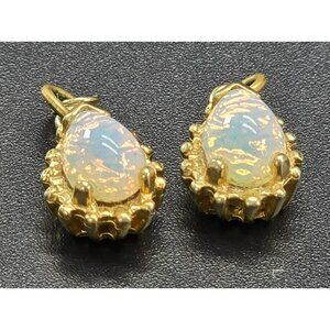 These tiny golden teardrops hold a fiery moonstone? surprise, perfect for upgrading your jewelry game or impressing your cat. The moonstone teardrop cabachon on gold filled background gives it the look of opals.