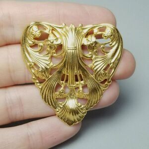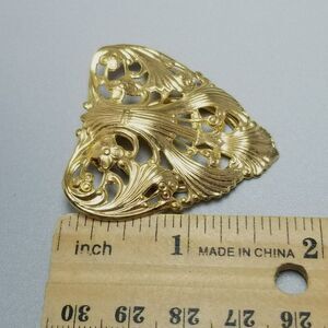 Vintage Gold Tone Triangle Shape Scarf Clip, Scroll Filigree Design, Estate
