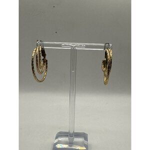 Vintage Gold-Tone Triple Hoop Clip-On Earrings Textured Metal Retro Style Womens