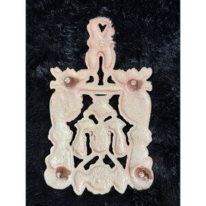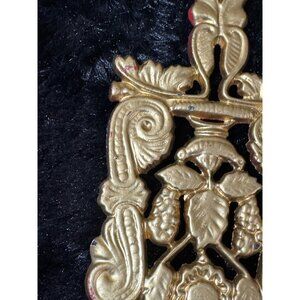 This ornate vintage Trivet wall plaque features intricate floral and grapevine motifs in a gold-tone finish, ideal for enhancing classic or traditional decor.