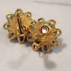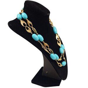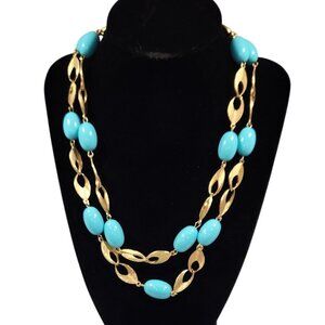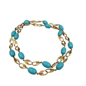 Vintage Gold-Tone & Turquoise Beaded Necklace With Matching Clip-On Earrings Set