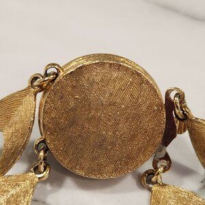 This elegant vintage jewelry set features a gold-tone chain with turquoise-hued beads and matching clip-on earrings, offering a timeless, sophisticated look.