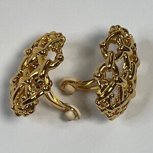 Vintage Gold-Tone Woven Clip-On Earrings Oval Design Womens Jewelry
