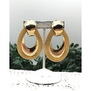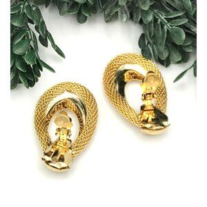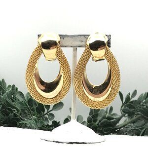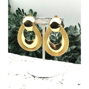Vintage Gold-Tone textured double hoop Clip-On Earrings