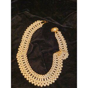 Vintage Gold-Toned Pearl & Rhinestone Choker Necklace With Elegant Layered Desig