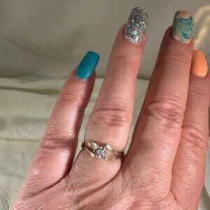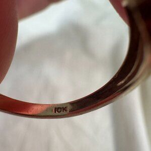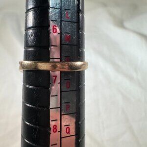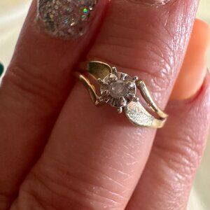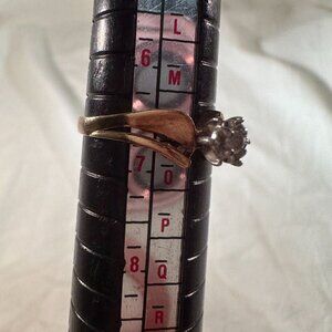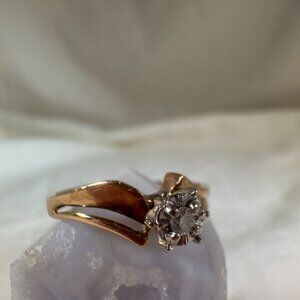 This vintage gold-toned ring captures timeless beauty with its solitaire diamond design. Its unique band adds a touch of elegance, making it a cherished piece.