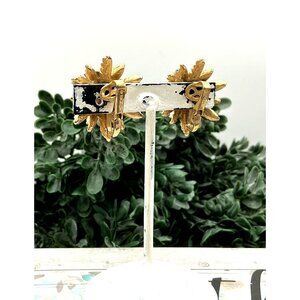 These vintage starburst earrings feature a textured gold-tone design with clip-on backs, blending elegance with ease for a timeless accessory.