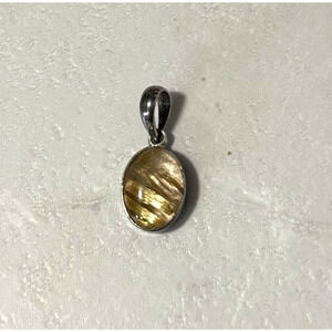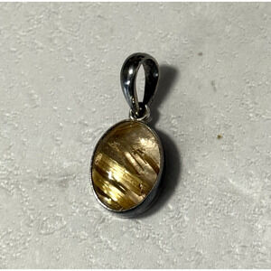 Vintage Gold/Yellow Rutilated Quartz 925 Sterling Silver Necklace Pendant