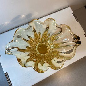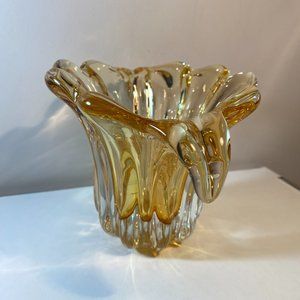 Vintage Golden Amber Hand Blown Glass Vase with Drip Handles