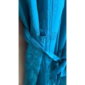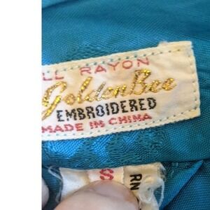 Vintage Golden Bee Asian Turquoise Robe with Belt, Rayon, Small