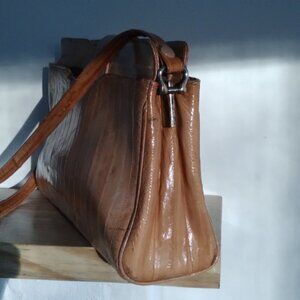 Vintage Golden Camel Eel Skin Shoulder Bag ~ Remarkable Texture & Strength!