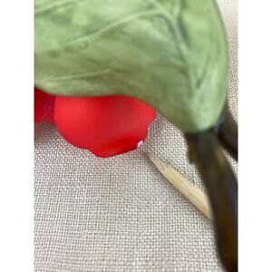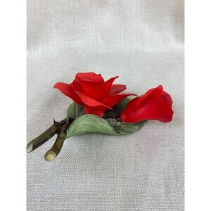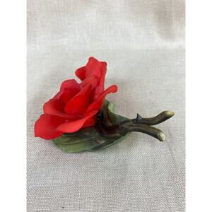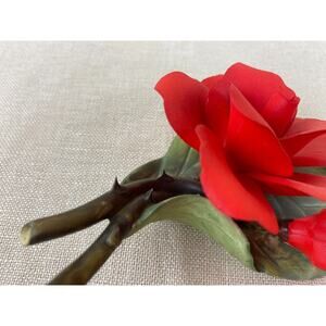 Rich red colored porcelain rose, very delicate with much attention to detail. The stems even have the thorns. Measures 5" long, 4" wide.