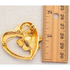 Vintage Golden Heart With Bow Brooch by Avon - A12