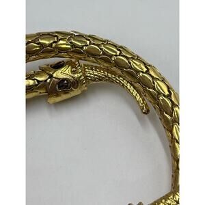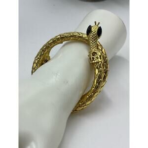 Vintage Golden Mesh Stretch Black Eye Rhinestone Egyptian Snake Coil Bracelet