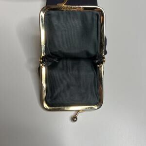 Charming vintage Golden Seal coin purse, made in West Germany. Features a beautiful floral needlepoint tapestry design with vibrant roses and a kiss-lock metal clasp. Classic black lining with “Golden Seal West Germany” stamped inside. Measures approximately 6”. Perfect collectible piece or gift for vintage lovers.