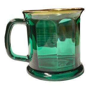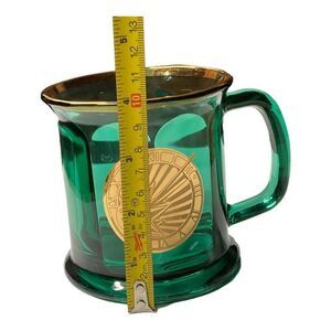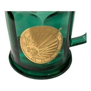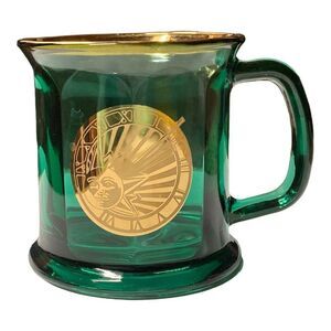 Golden Sunshine w/Roman Numerals Culver Glass Green Gold Gilded Crest Mug 4”.