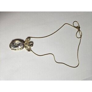 Vintage Golden Tone Metal Large Pear Shaped Rhinestone Bow Pendant Necklace.