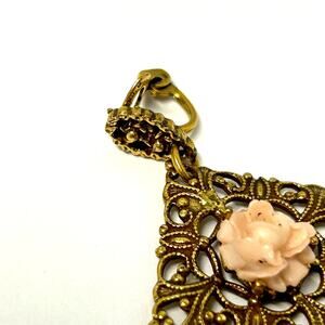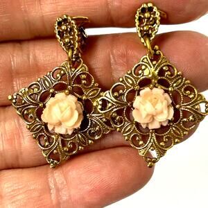 Vintage Goldette Gold Filigree Pink Rose Earrings