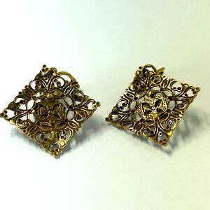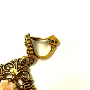 Vintage Goldette Gold Filigree Pink Rose Clip On Earrings