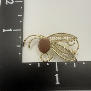 Vintage Goldstone Bracelet Brooch Leaf Bug Bangle 7”
