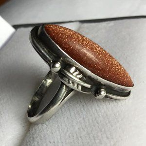 Vintage Goldstone & Sterling Silver Ring - Signed