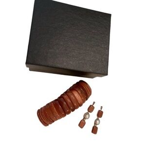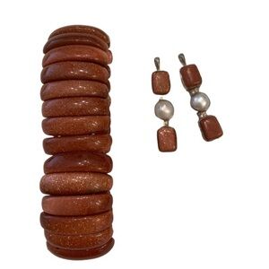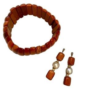 Vintage Goldstone sparkle stretch bracelet & 2 drop pendants/earrings faux pearl