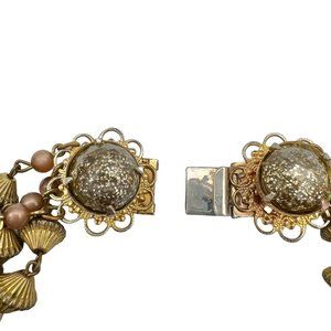Vintage Goldtone Beaded 4 Strands Necklace Gray and Brown