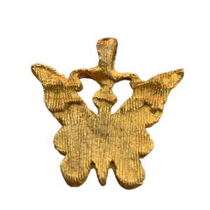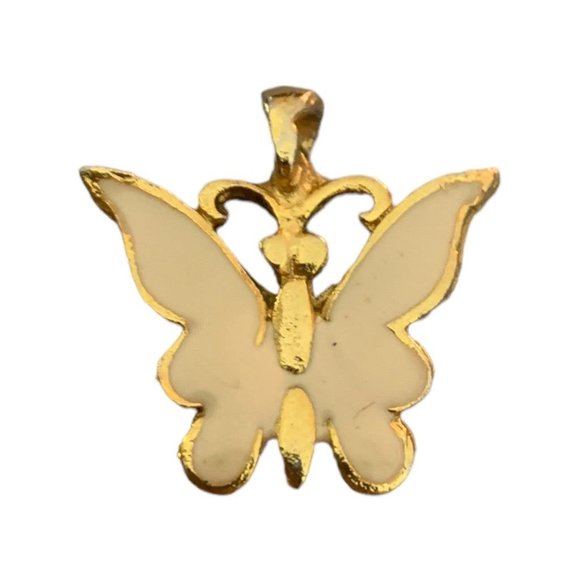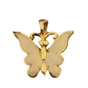 Vintage Goldtone Butterfly Pendant Ivory Enameled Small 1"