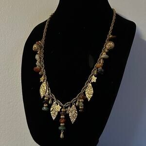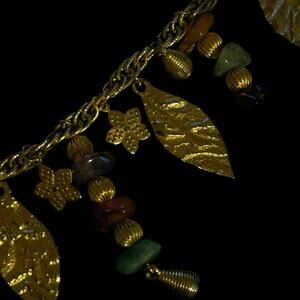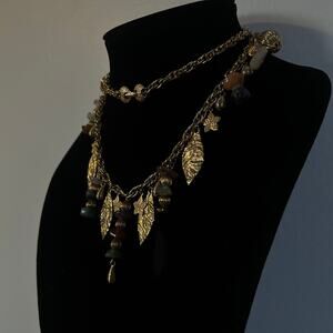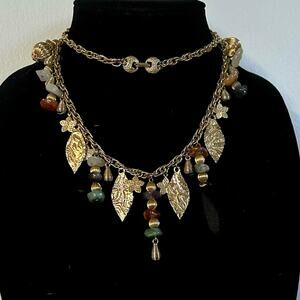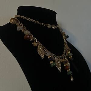 This is a Vintage Goldtone Earthy and Crystal Charm Necklace 30 in Statement Necklace
