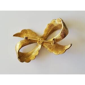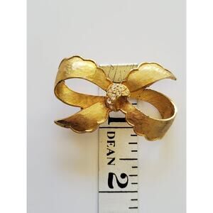 Vintage Gold-tone Etched Ribbon with Rhinestone Brooch