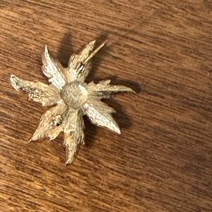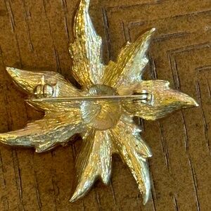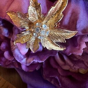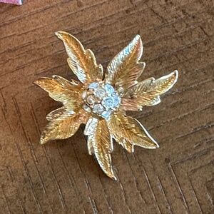 Vintage Gold-tone Flower Brooch with Rhinestone Center