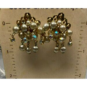 Vintage Gold-tone Metal & Faux Baroque Pearl Cluster Dangle Clip-on Earrings