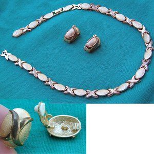 Vintage Goldtone Necklace & Clip-on Earrings Set BROKEN
