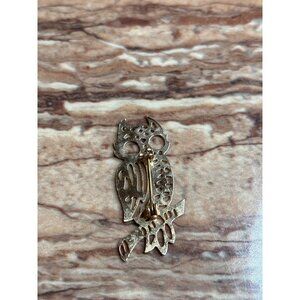 Vintage Goldtone Owl Brooch Pin 1.5 inch