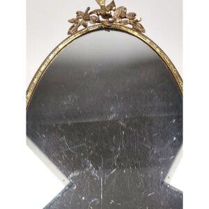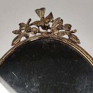 Vintage Goldtone Signed Matson Dogwood Flower Bird Vanity Mirror Tray 14.5" x 7"