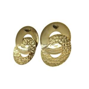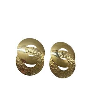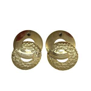 Vintage Goldtone Statement Earrings Hammered Pierced 2.2 Inch