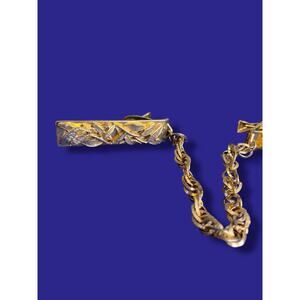 Vintage Goldtone Sweater Clip Bar Clips Vine Design Chain