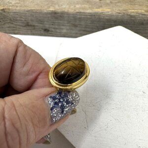 Vintage Goldtone Tigers Eye Scarab Tie Tack Pin