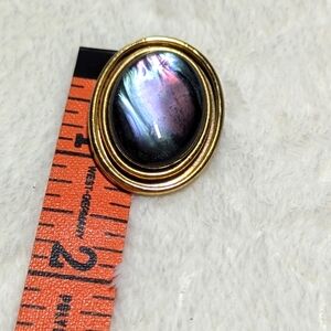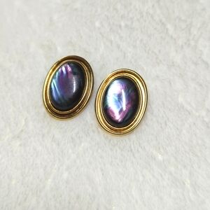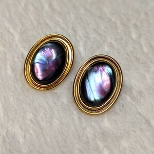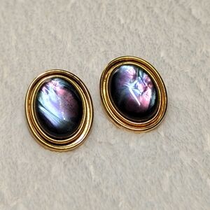 Vintage Goldtone and Faux Black Mother Of Pearl Button Pierced Earrings