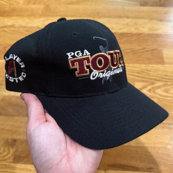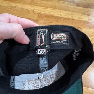 Vintage Golf Hat PGA Tour Fitted Cap Black Green Underbrim WOOL 7&1/2 RARE