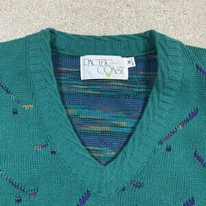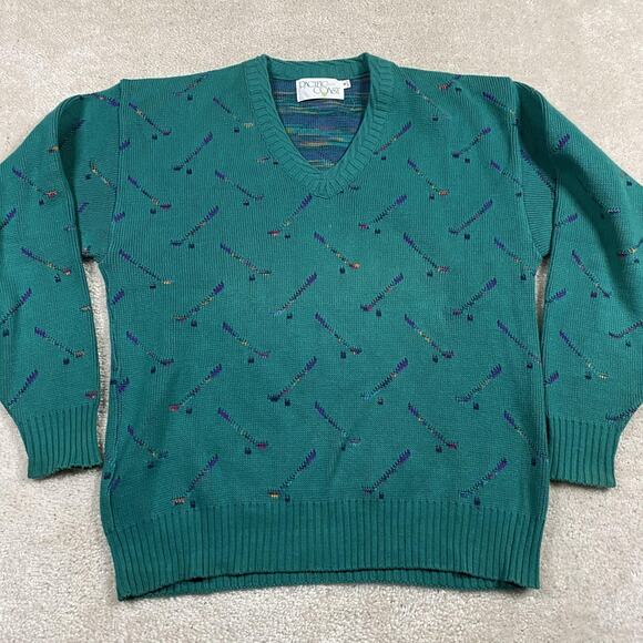 Vintage 90s Golf Knit Sweater Mens M Pacific Coast Green Cotton Abstract 90s Preppy