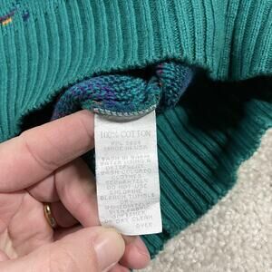 Vintage Golf Knit Sweater Mens M Pacific Coast Green Cotton Abstract 90s Preppy