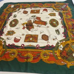 Vintage Golf Theme Scarf Square Polyester Made in Italy Golf Clubs