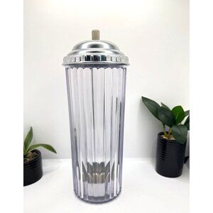 This straw dispenser from Goodcook features an elegant chrome lid and ribbed clear body. Ideal for organizing straws in kitchens or cafes. Approx. size 10.5" Tall x 4" Diameter.