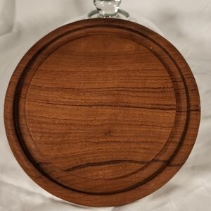 Vintage Good Wood Genuine Teakwood Cheese Tray w/ Heavy Glass Dome Cover Dish