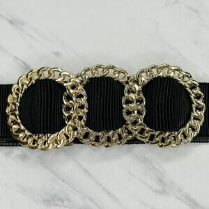 This amazing vintage Goodheart cinch belt is giving major Y2K vibes! The interlocking gold tone chains with black elastic create such a statement look that's perfect for channeling retro glam energy.